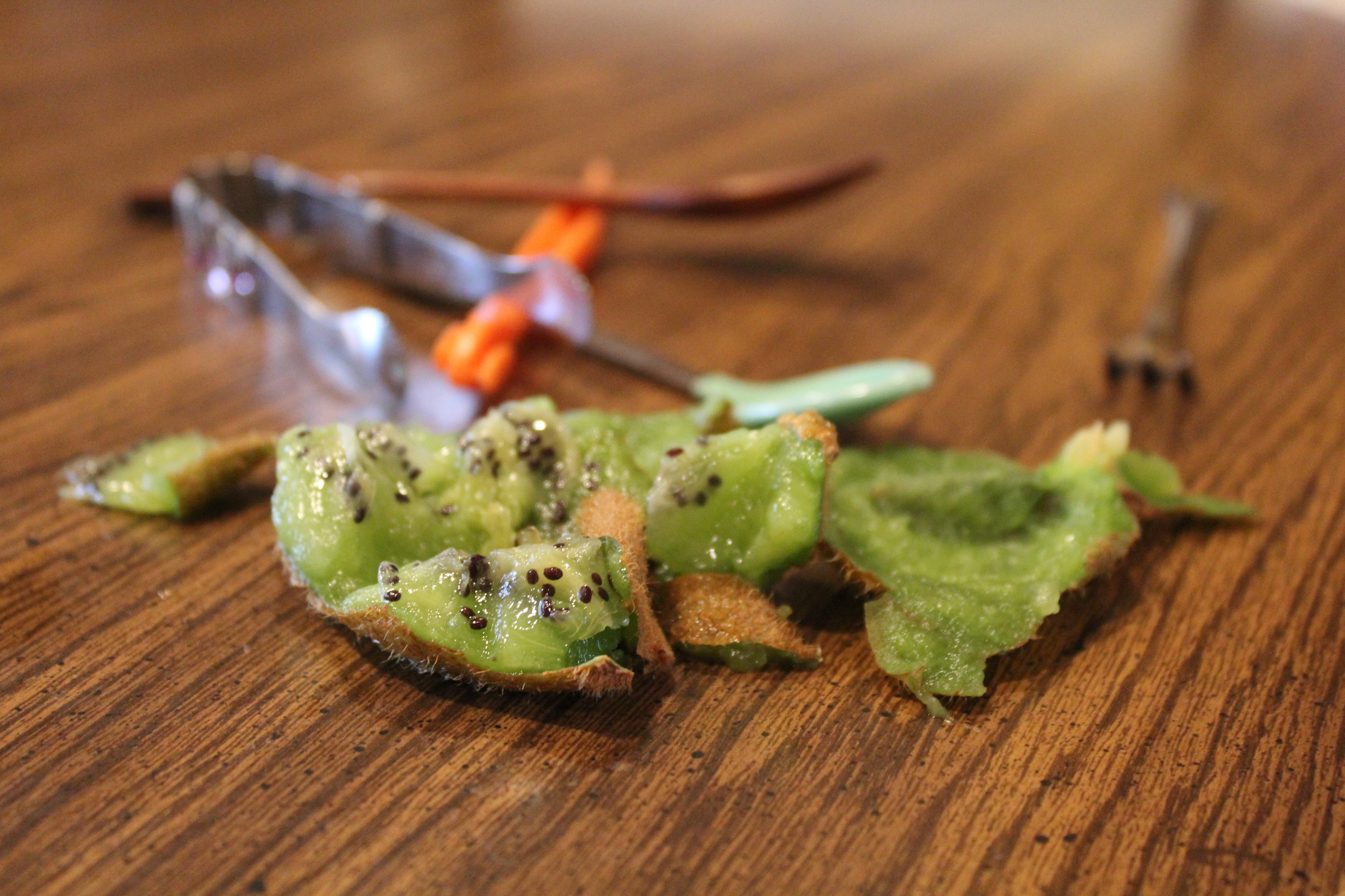 Check out the number of implements my three-year-old used to get into this kiwi. Impressive.